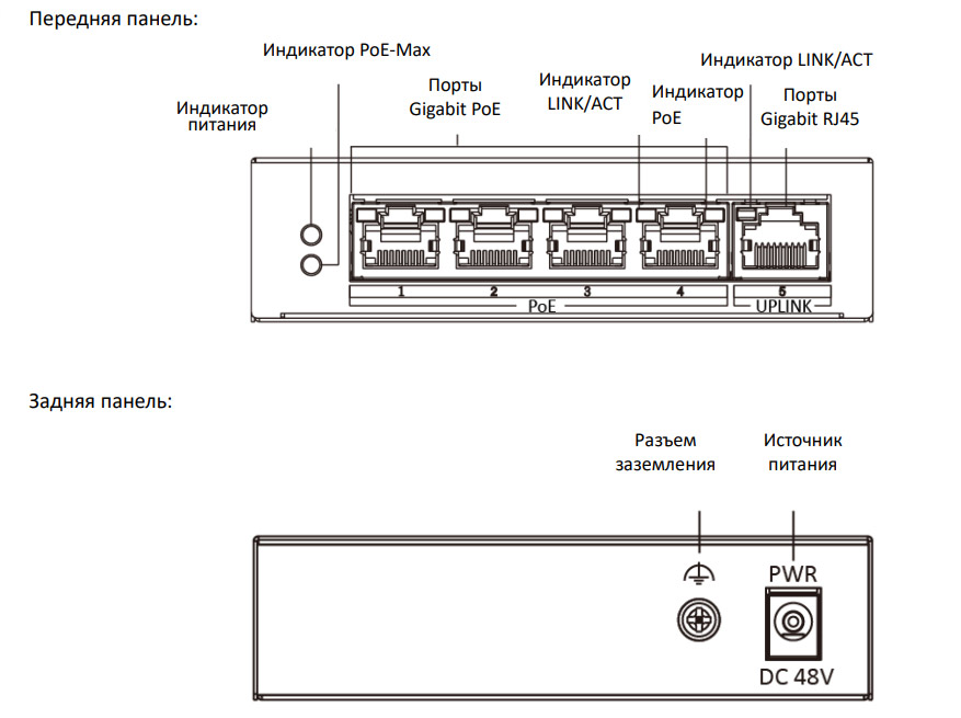 • Количество портов: 4 × Gigabit PoE-порта, 1 × Gigabit RJ45 порт