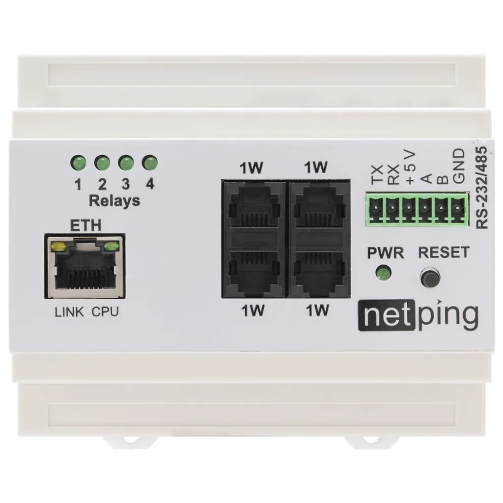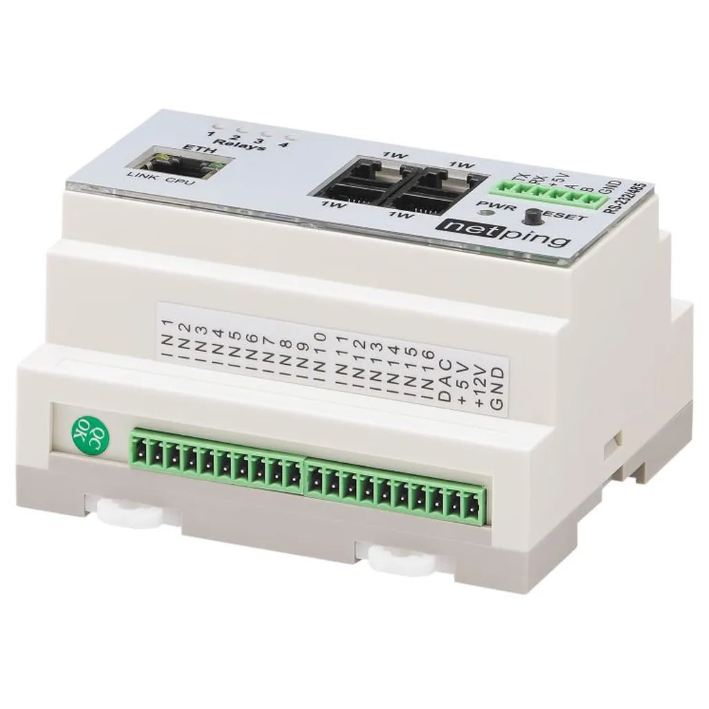 Устройство удаленного мониторинга датчиков и управления по сети Ethernet на DIN-рейку. 4xRelay/16xIn/4xOut/4x1w/1xEth.