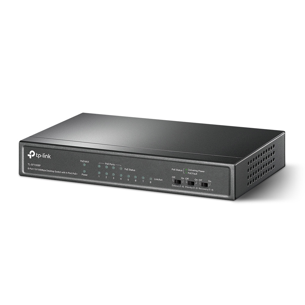 - Кнопка PoE Auto Recovery (порты 1–4)