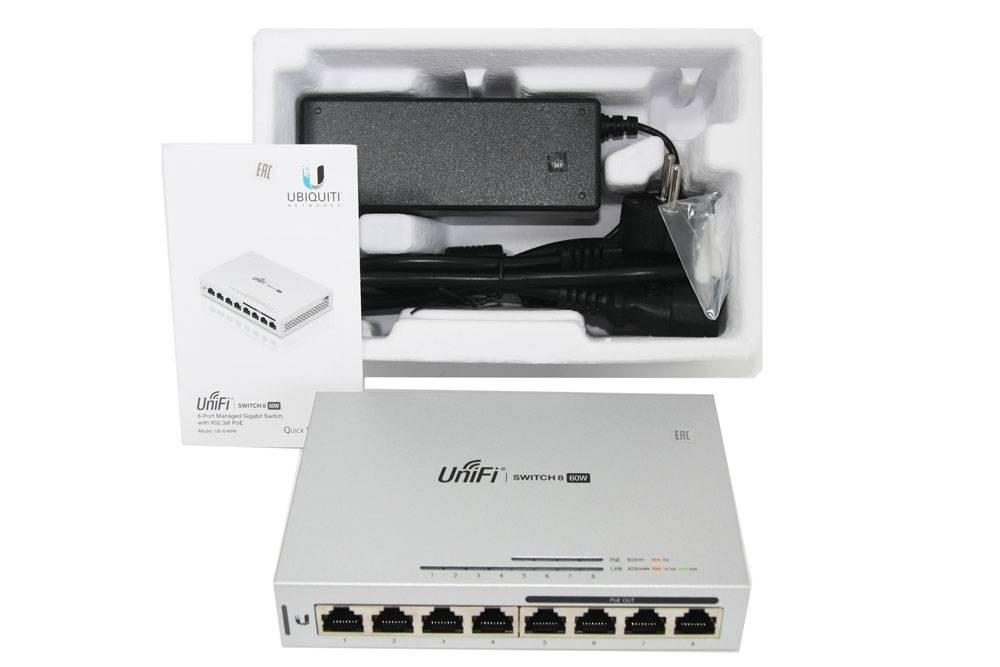 UniFi Switch 8-60W первая и наиболее простая модель в серии коммутаторов UniFi с возможностью раздачи питания PoE подключенному оборудованию. Коммутатор имеет 8 гигабитных Ethernet портов, с возможностью раздачи питания PoE на портах начиная с 5 по 8.