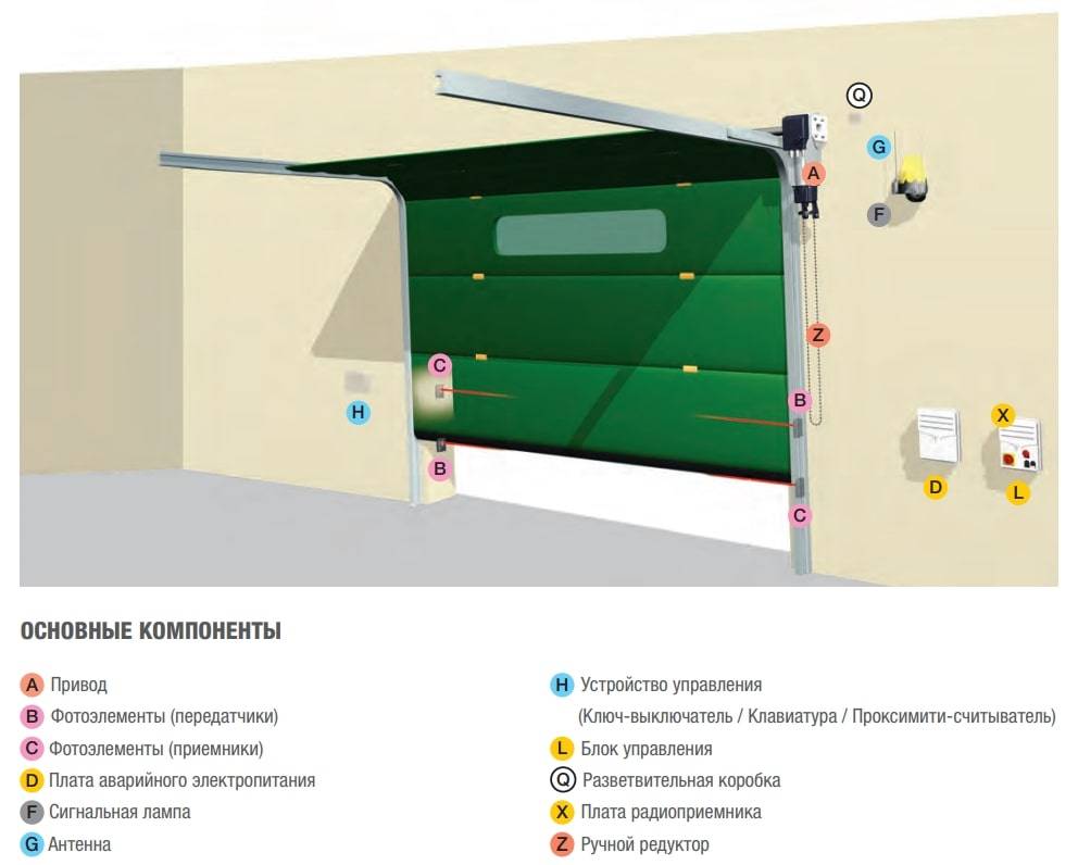 • специальное решение, предназначенное для секционных ворот, позволяет полностью открывать ворота без необходимости в использовании устройства разблокировки;