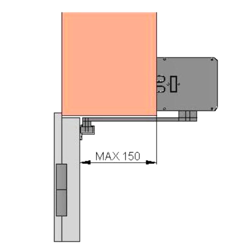Расстояние от плоскости крепления короба автоматики до створки не должно превышать 150 мм.