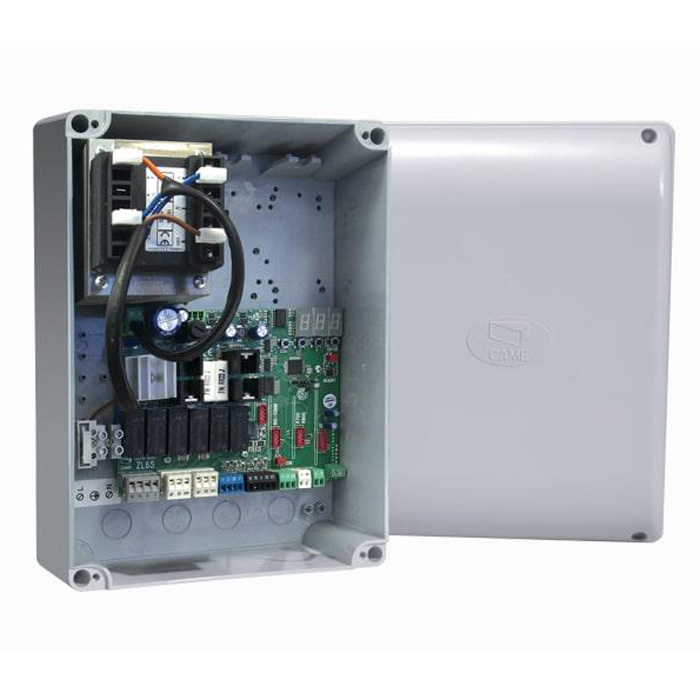 Блок управления для распашных ворот с дисплеем, радиодекодером и функцией самодиагностикой устройств безопасности.