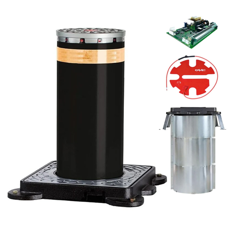 Автоматический противотаранный барьер FAAC, комплект дорожного блокиратора J275 HA V2 высотой 600 мм. Гидравлический боллард, окрашенная сталь поставляется в комплекте с блоком управления, коробом фундаментным, удлинителем короба и нагревателем. Блок управления может управлять четырьмя боллардами типа J275 HA синхронно.