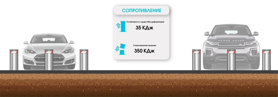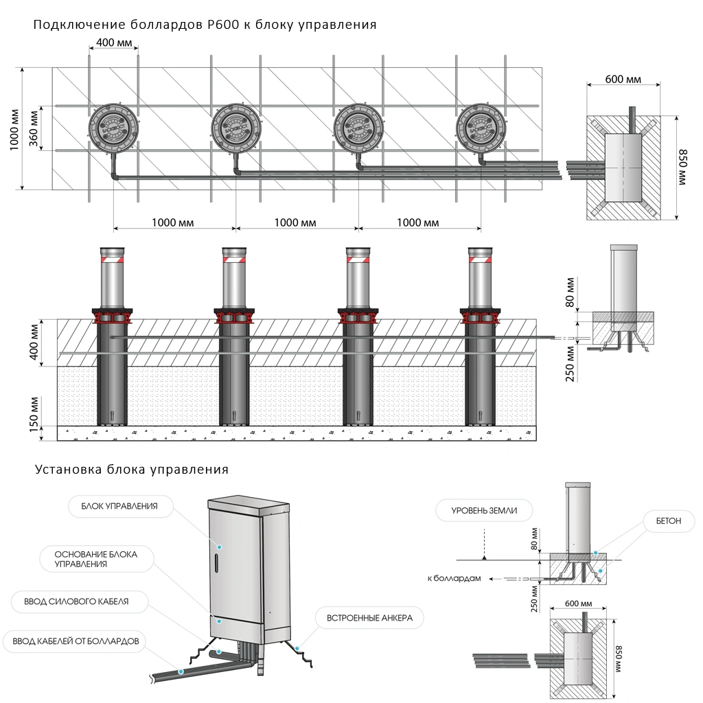 - Достаточный уровень защиты и масштабирование — в зависимости от характеристик автотранспорта на въездную группу ставится от 1 до 4 боллардов P600. Возможно увеличение количества с дополнительным блоком согласования.
