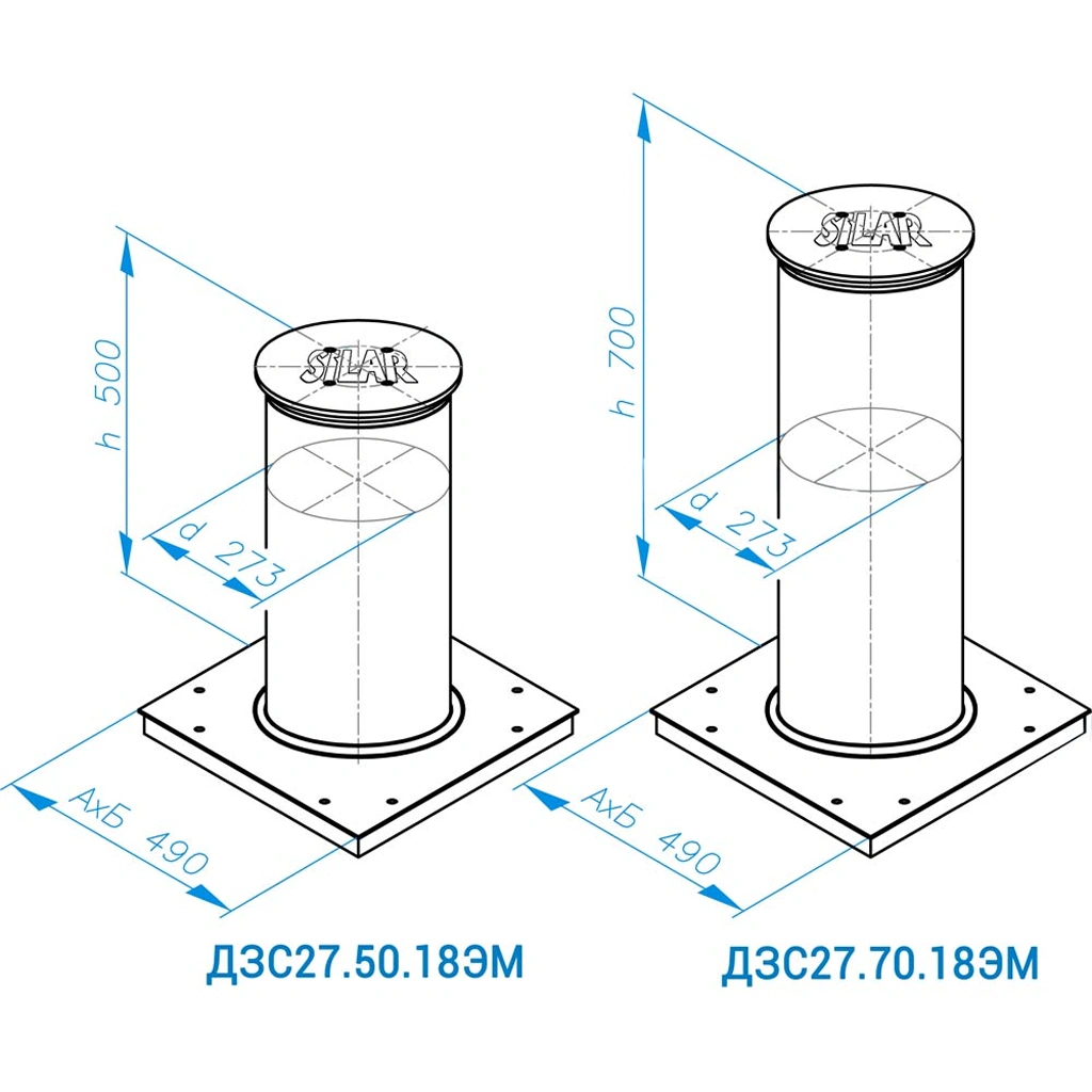 SILAR ДПС 27.70.18ЭМ - электромеханический боллард. Электромеханические болларды с толщиной стенки 18 мм можно применять на стратегических объектах, так как конструктивно они полностью соответствуют гидравлическим моделям. Однако в отличии от гидравлических боллардов имеют коэффициент использования 25% поэтому их не желательно применять на проездах с высокой интенсивностью движения.