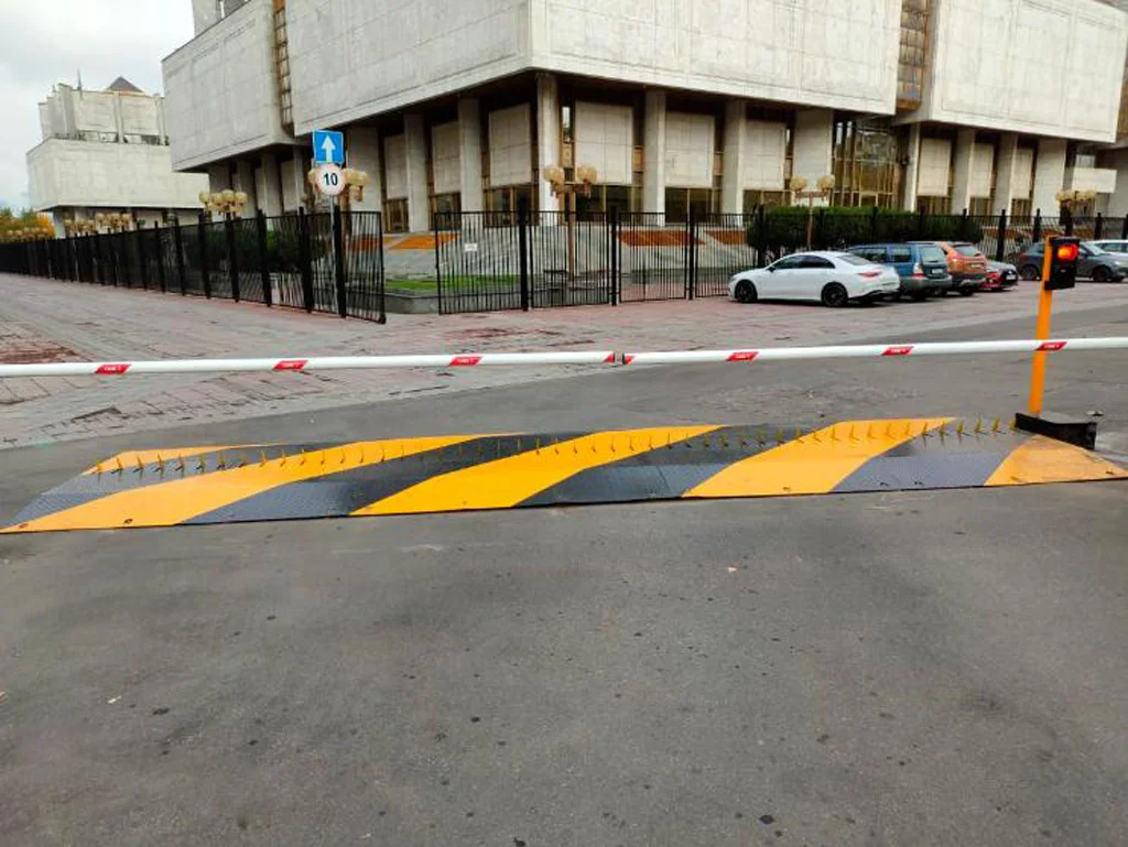 - Длина противотаранного блокиратора 4 метра. При необходимости перекрытия дороги большей ширины устанавливаются несколько блокираторов в режиме синхронизации.