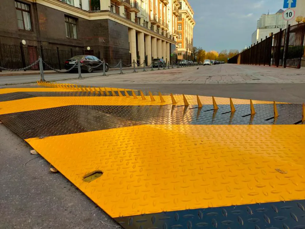 - В опущенном положении ППШ-СБ по форме напоминает форму «лежачего полицейского» с пологими скатами, по которому свободно могут проезжать транспортные средства.