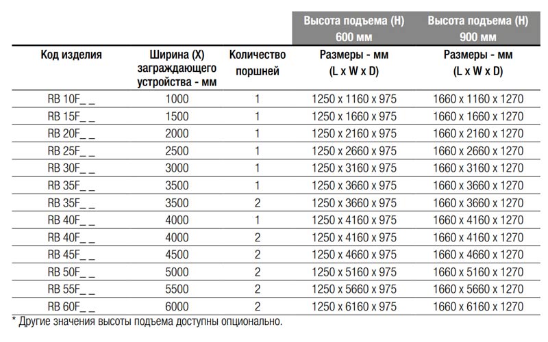 Модели шириной 1 - 4 м содержат один поршень (опция: модели шириной 3,5 и 4 м содержат два поршня).