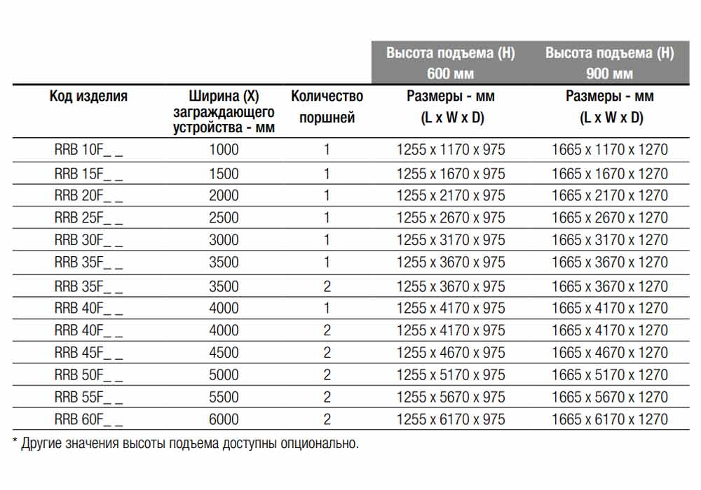 Модели шириной 1 - 4 м содержат один поршень (опция: модели шириной 3,5 и 4 м содержат два поршня).