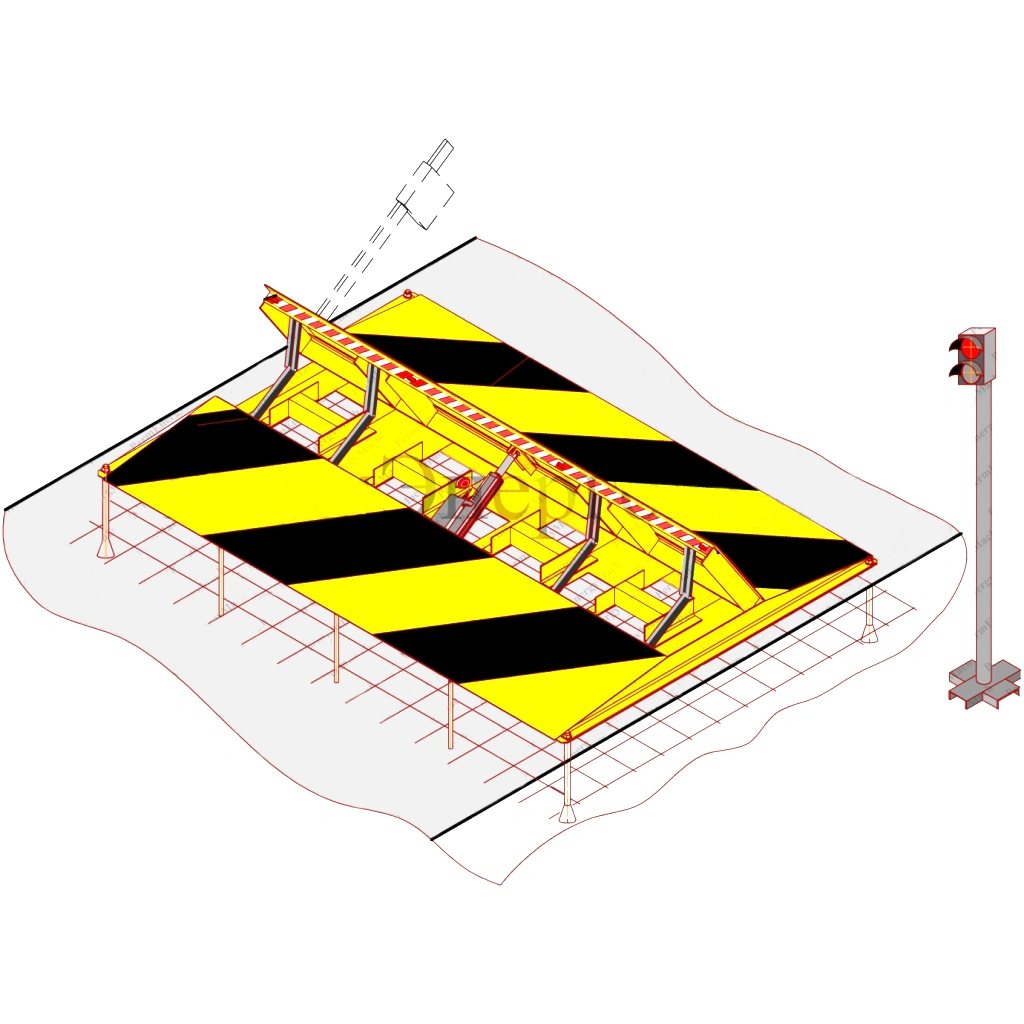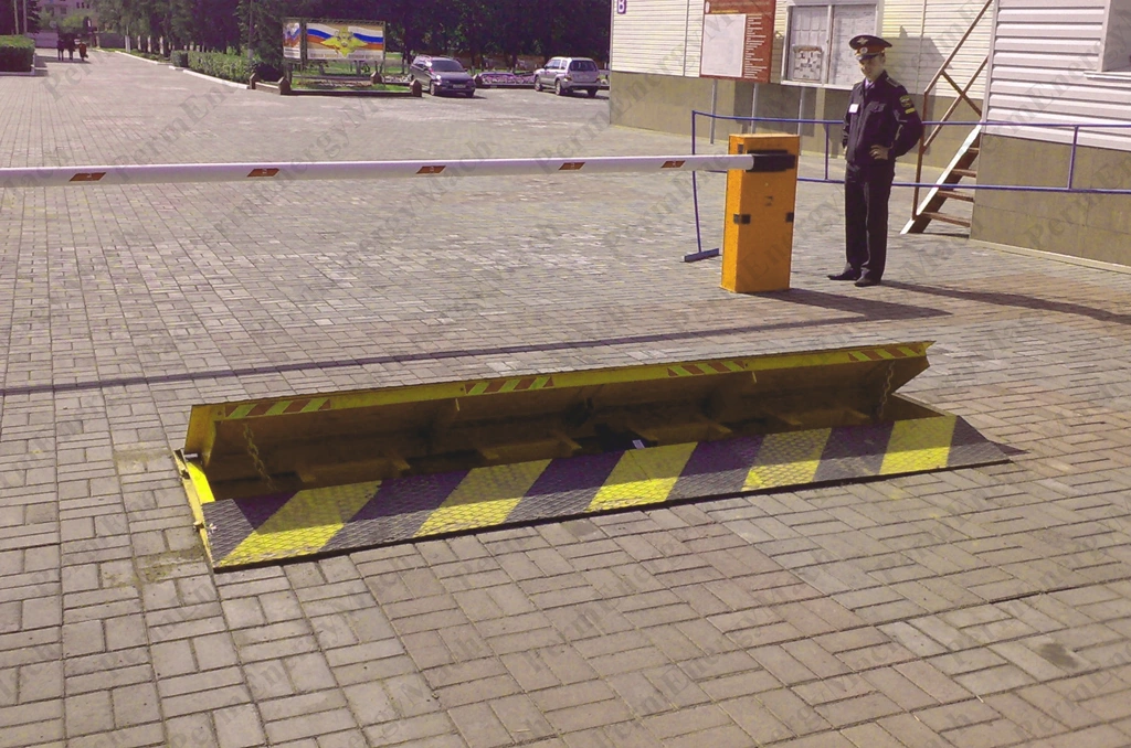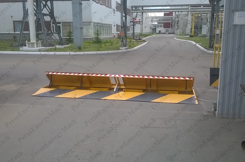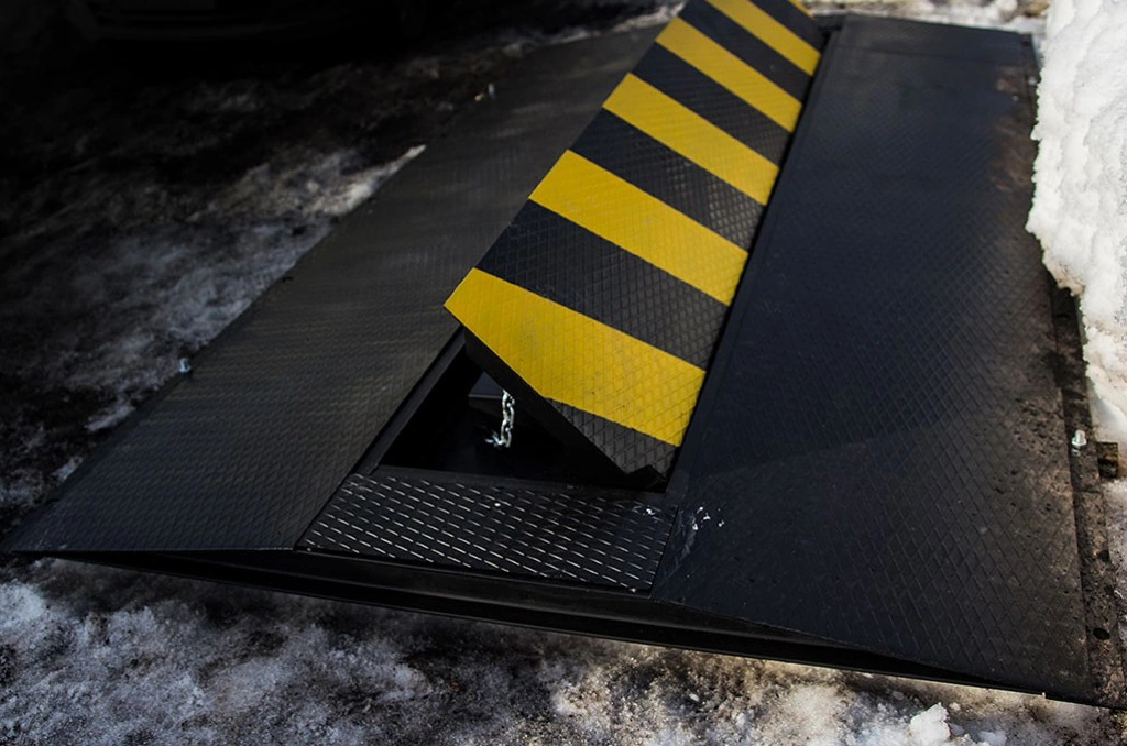 Дорожный блокиратор Скат-1500У — электромеханическое противотаранное устройство накладного типа, предназначенное для защиты проездов, объектов транспортной безопасности и промышленных территорий. Конструкция выполнена в виде цельносварной рамной базы с покатыми скатами и подъемной платформой, обеспечивающей эффективную принудительную остановку колесных транспортных средств. В сложенном положении устройство функционирует как искусственная дорожная неровность, ограничивая скорость движения, а в боевом положении — создает мощный механический упор, препятствующий несанкционированному проезду автомобилей.