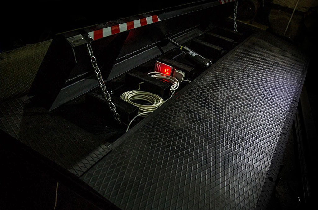 - Крышка подъемной платформы и листы скатов: антипроскальзывающие, ромбическим рифлением