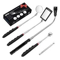 Комплект досмотровых средств Кондор 1А включает в себя 5 предметов. Зеркало телескопическое круглое диаметром 5см, зеркало телескопическое прямоугольное 8х5см, телескопический магнит малый, телескопический магнит большой, фонарь светодиодный на изгибаемой штанге с магнитным креплением.