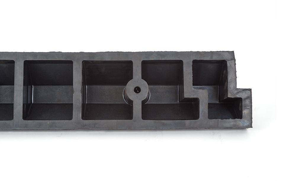 Как правило, резиновые колесоотбойники выполняются в форме трапеции и закрепляются на плоской поверхности. Высота изделия стандартна и составляет 100 мм.