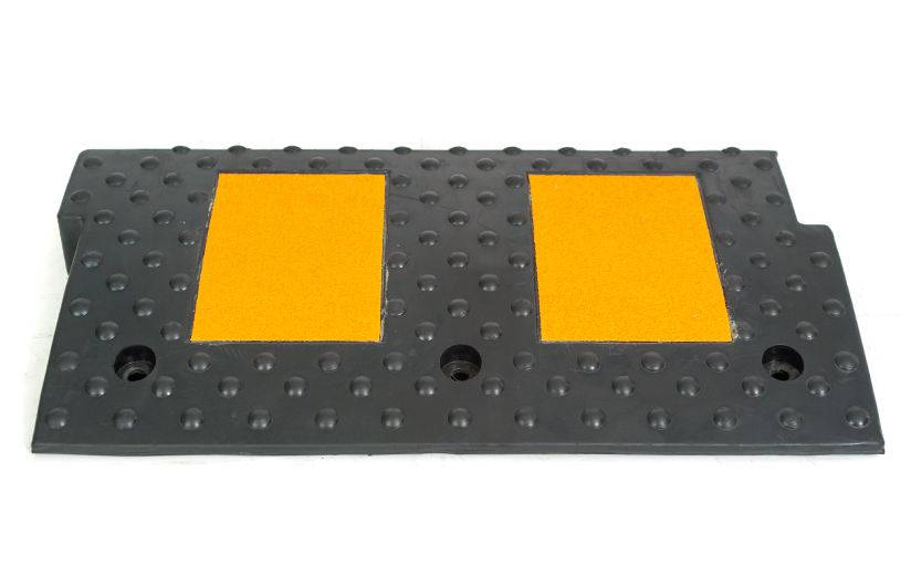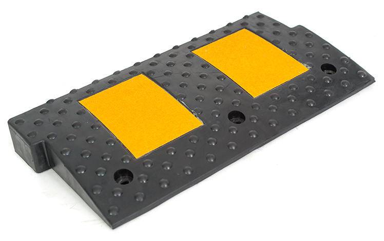 Бордюрный съезд, выполненный из черной резины, оснащен светоотражающими элементами из пленки высшего класса и имеет противоскользящую поверхность, что является его дополнительным преимуществом, учитывая климатические особенности, в которых он будет эксплуатироваться.