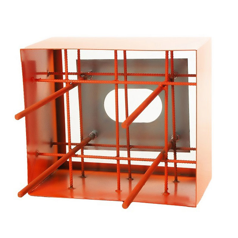 Опалубка О-4000 изготовлена из железного листа толщиной 2 мм. Внутри данной конструкции находится обваренная арматура толщиной 6-8 мм и четыре шпильки — 12 мм, выставленные под заданный размер шлагбаумов вышеперечисленных серий. Опалубка окрашена порошковым покрытием, цвет по RAL-2008.