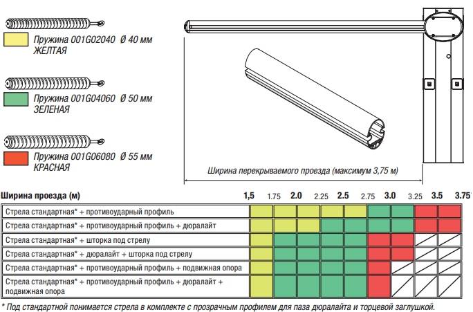 Для балансировки стрелы, подберите пружины в соответствии с длиной стрелы и установленными на ней аксессуарами: