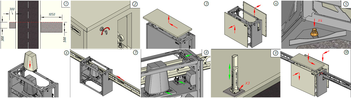 9. Установить и закрепить при помощи 3-x анкеров приемный столб, отрегулировать по высоте