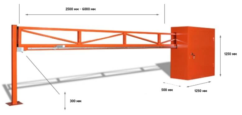• Вес шлагбаума: ~ 150кг (зависит от длины стрелы)