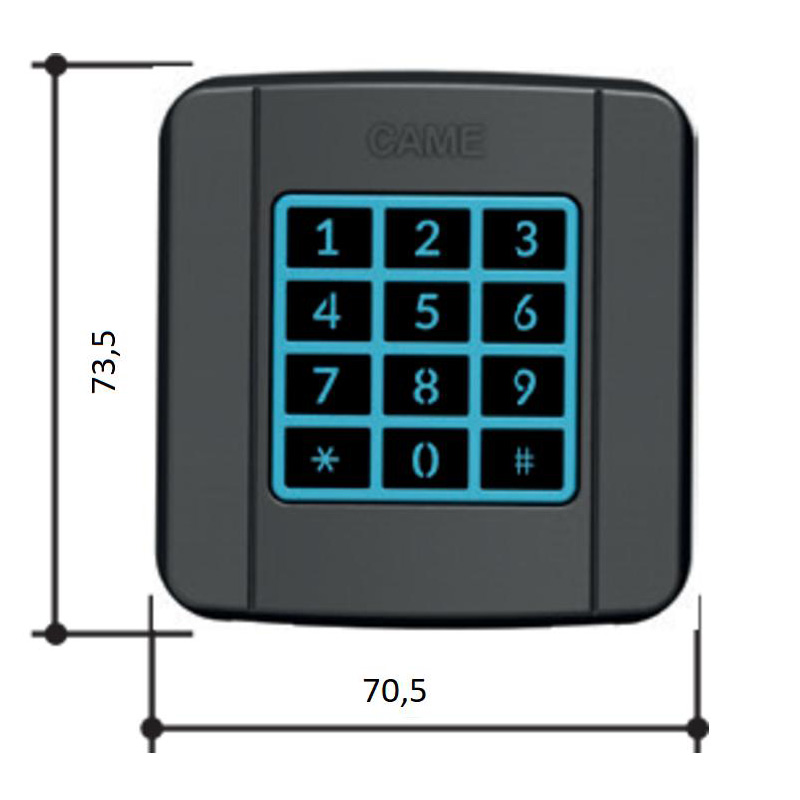 Цифровое управление автоматическими системами. Беспроводная, накладная кодонаборная клавиатура, 12 кнопок, синяя подвеска, возможность запоминания 25 кодов, может работать в режиме динамического или статического кода (цвет серый, RAL7024).