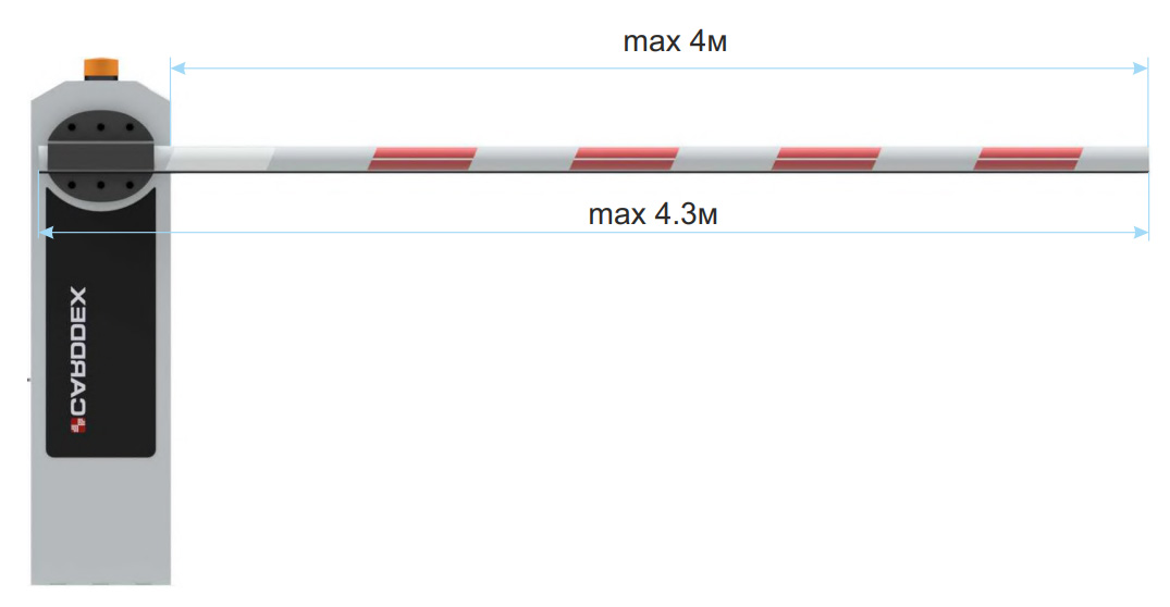 На шлагбаумы серии«RBM» устанавливается стрела длиной до 4,3 м.