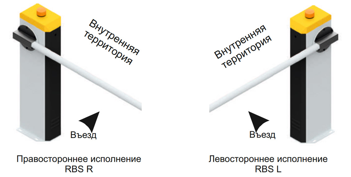 Шлагбаум выпускается в двух исполнениях: левостороннем и правостороннем.