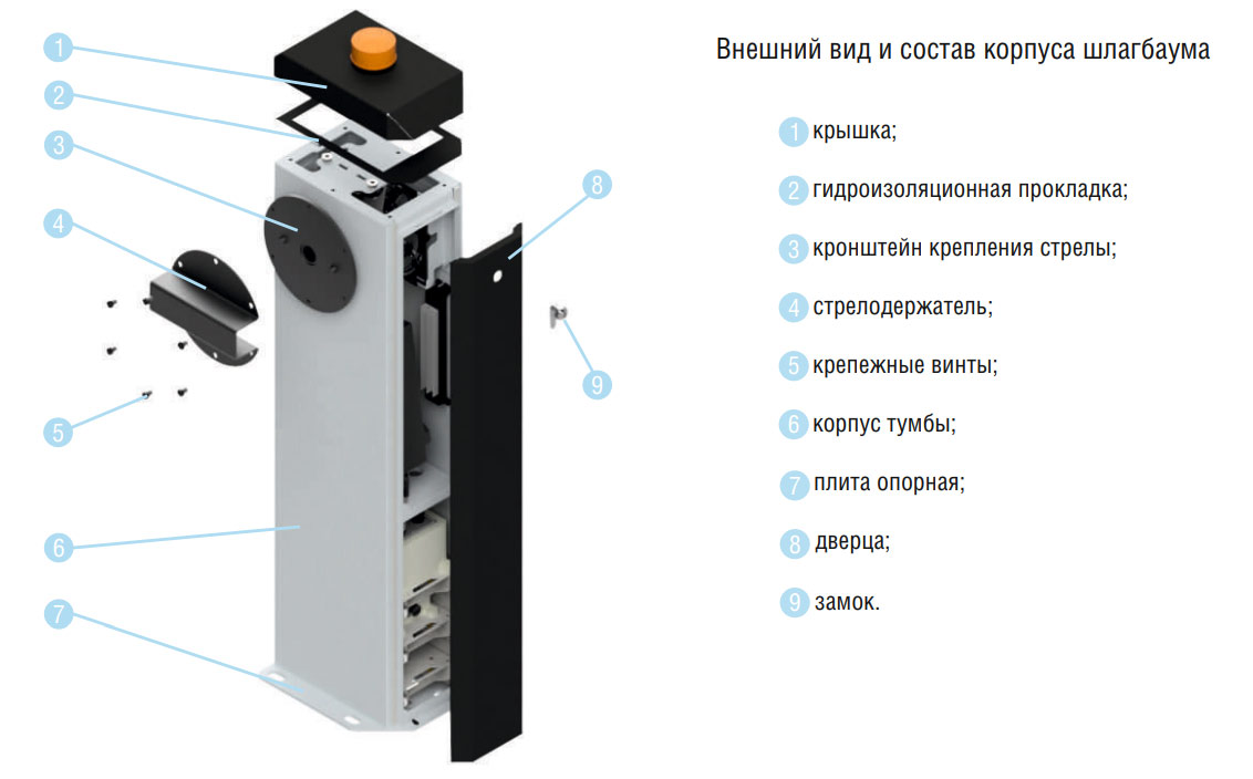 • Тумба шлагбаума «RBS-R» с беспружинным механизмом для правосторонней установки