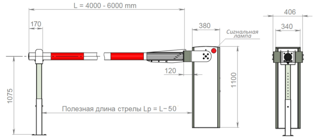 Тумба шлагбаума автоматического Пром-Гранд-Арктик антивандального исполнения с повышенным ресурсом работы с обогревателем, приводом, блоком электроники, сигнальной лампой, пультом управления 1 кнопка.