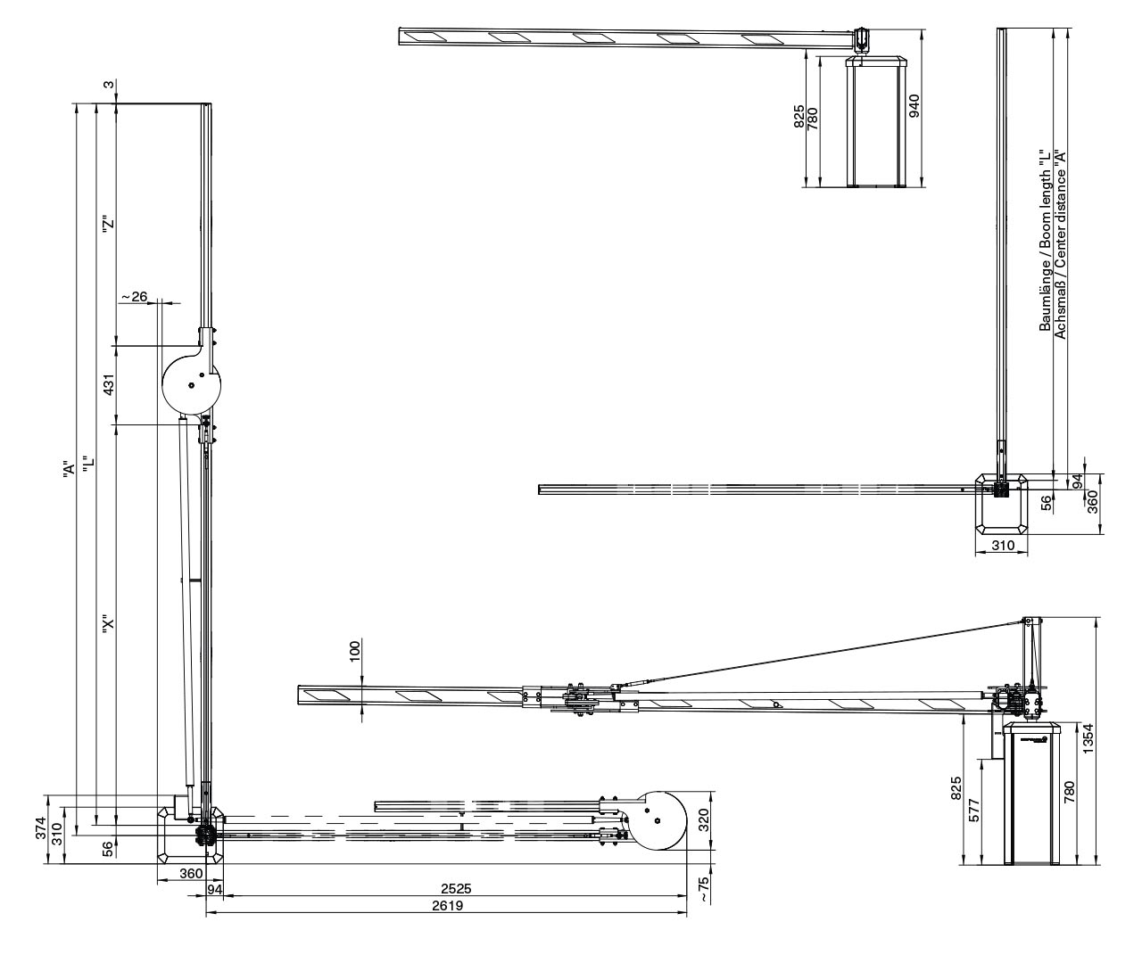 • Если длина стрелы шлагбаума превышает 3,5 м, необходима установка маятниковой опоры или опорной стойки.