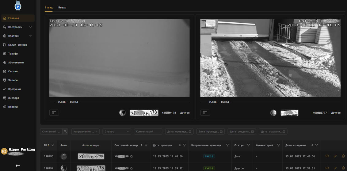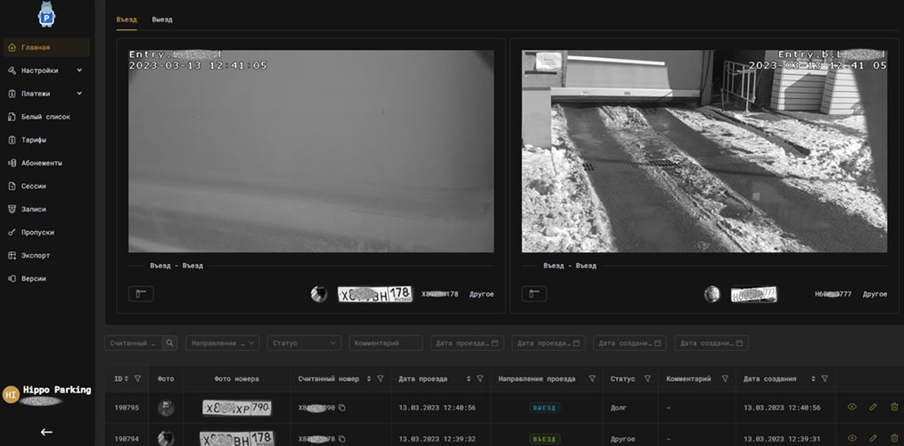Веб-приложение CRM для управления конфигурацией объекта и мониторинга парковочных сессий - https://app.hippoparking.ru/main