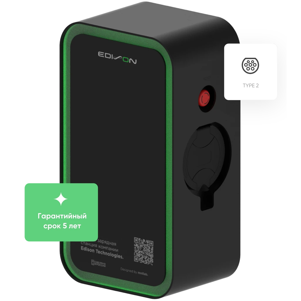 Зарядная станция Edison SOLO — одна из самых компактных станций на отечественном рынке. Она отличается небольшими габаритами, что делает ее удобной для размещения как в частных владениях, так и на коммерческих объектах. Корпус станции выполнен из прочных материалов, устойчивых к суровым погодным условиям, включая сильные морозы, высокие температуры, осадки и запыленность, что обеспечивает длительный срок службы оборудования.