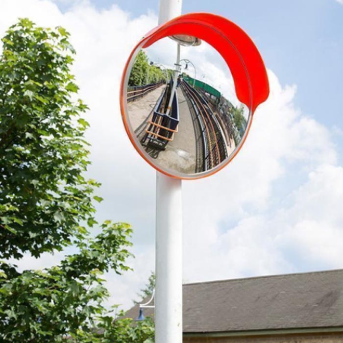 Основа зеркала выполнена из ABS пластика оранжевого цвета. В верхней части предусмотрен козырек для защиты от солнца и осадков.