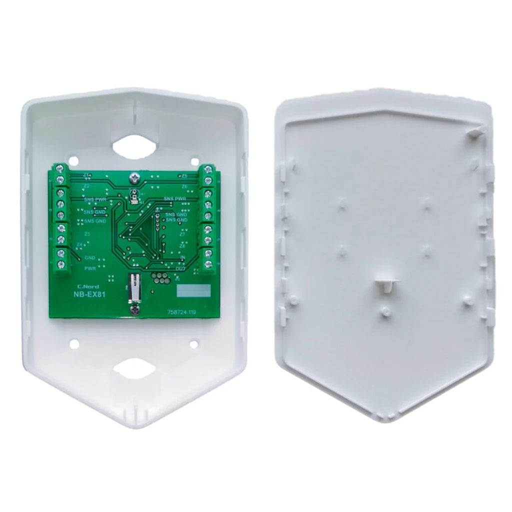 Модель NB-EX81 поддерживает до шести универсальных шлейфов (Z1–Z6), которые можно конфигурировать как входы или выходы, и два дополнительных шлейфа (Z7–Z8) для подключения двухпроводных пожарных датчиков или охранных извещателей. Один шлейф поддерживает до 20 пожарных извещателей, обеспечивая стабильное распознавание состояний «Норма» и «Пожар». К одной контрольной панели Nord Pro или Nord Max можно подключить до пяти расширителей, увеличивая общее количество зон до 48. Беспроводные панели Nord Pro Air и Nord Max Air поддерживают один расширитель и максимум 16 шлейфов.