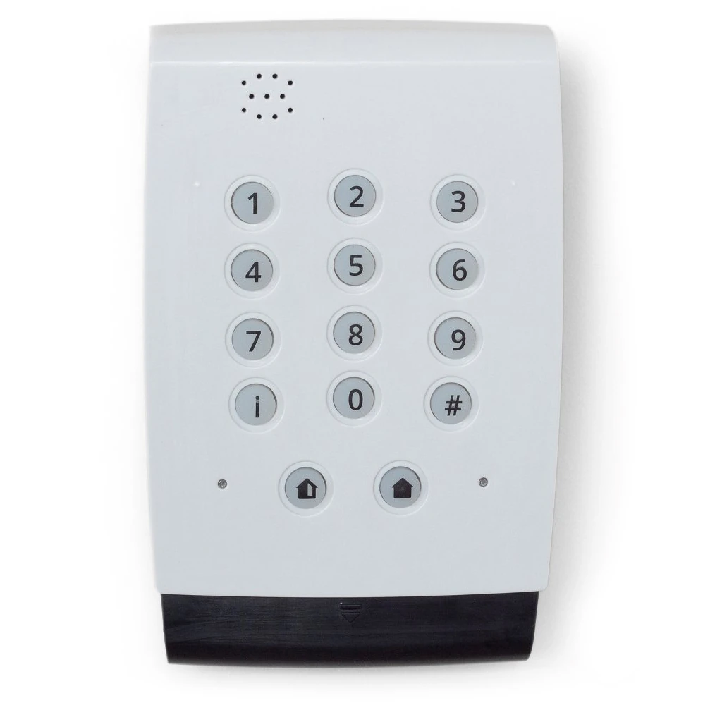 Работа осуществляется в диапазоне частот 433,05–434,79 МГц с автоматическим переключением на резервную частоту при помехах. Для питания используются две литиевые батареи CR123A — основная и резервная. На корпусе размещены красный и зелёный светодиоды, встроенный звуковой излучатель и подсветка клавиш, обеспечивающие удобное управление даже в тёмных помещениях. Монтаж выполняется на стену, соединение с панелью происходит по радиоканалу без прокладки проводов.