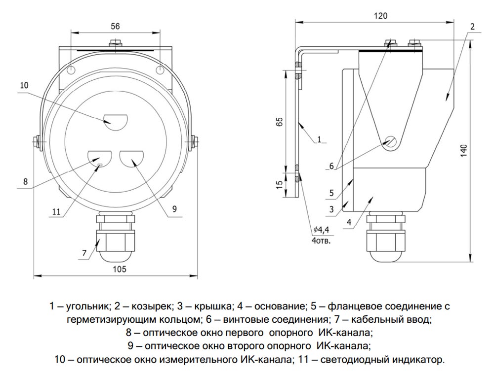 - Корпус с козырьком и универсальным кронштейном для точного ориентирования в пространстве