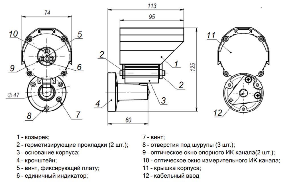 - Степень защиты извещателя, обеспечиваемая оболочкой, соответствует коду IP55 по ГОСТ 14254.