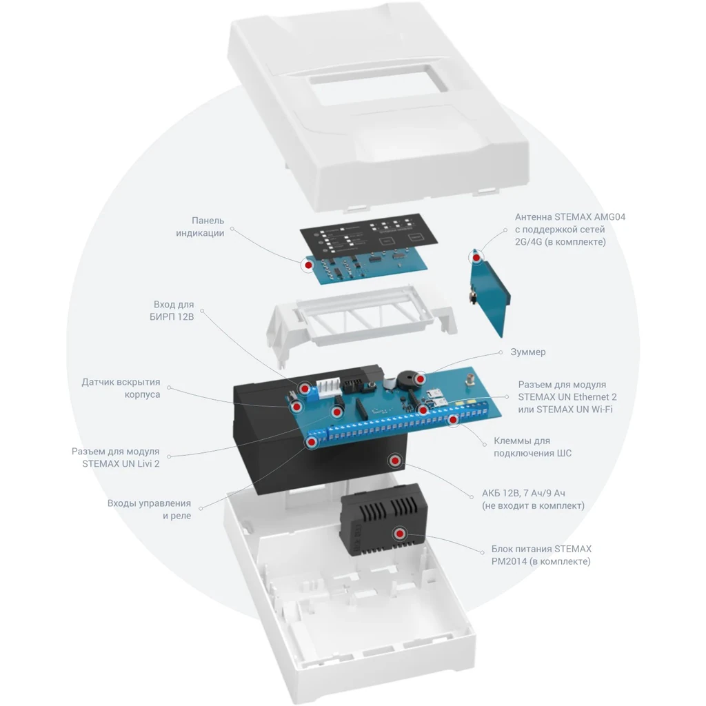 - дополнительные каналы связи за счёт модулей STEMAX UN Ethernet 2 и STEMAX UN WiFi 2