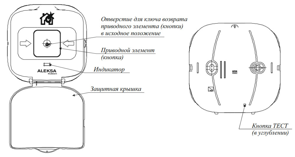 - Для возврата кнопки из сработанного состояния в исходное применяется ключ, входящий в комплект поставки