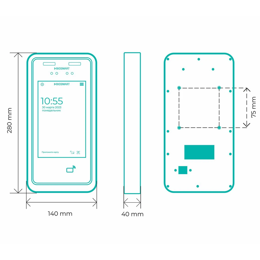Терминал оснащён встроенным RFID-считывателем и поддерживает идентификацию по смартфонам с использованием технологии NFC, что позволяет комбинировать различные способы доступа в рамках одной системы. Устройство интегрируется с программным обеспечением BioSmart-Studio и внешними системами СКУД по интерфейсам Ethernet, Wiegand и RS-485. Сенсорный дисплей диагональю 7 дюймов обеспечивает удобное взаимодействие с пользователем, а поддержка питания по PoE упрощает монтаж и снижает требования к кабельной инфраструктуре.