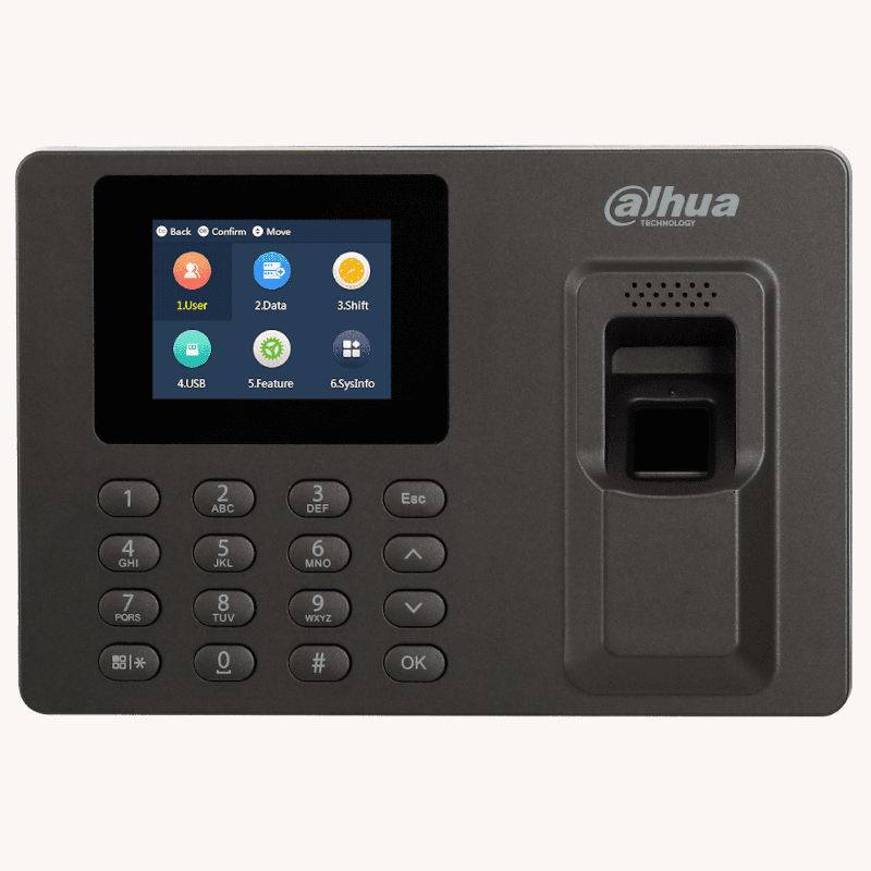Биометрический терминал учета рабочего времени Dahua DHI-ASA1222E — прибор контроля, выполняющий идентификацию персонала по отпечатку пальца (FP), паролю (PWD) или совместно по FP и PWD. Flash-память объемом до 8 Мбайт рассчитана на 2000 шаблонов, 1000 паролей, 100 000 записей и 10 000 документов менеджмента.