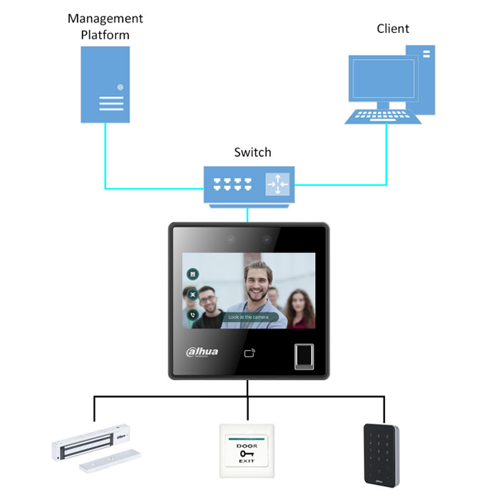 • Поддерживается несколько способов открытия двери (лицо, отпечаток пальца, IC-карта и пароль). Вы также можете комбинировать их, чтобы создать свои собственные способы открытия двери.