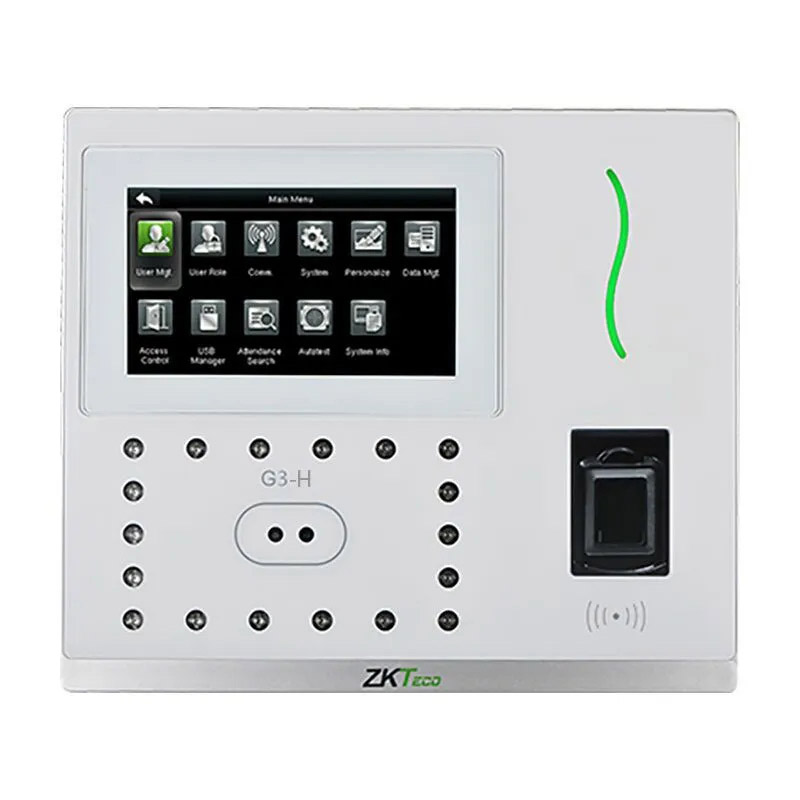 Гибридный биометрический терминал учета рабочего времени ZKTeco G3-H с функцией распознавания лиц и сканером отпечатков пальца. Оснащен сенсором отпечатков пальцев SilkID. В нем применена технология трехмерного нейронного распознавания отпечатков и активная защиты от помех, что позволяет точно и быстро распознавать сухие, влажные и грубые отпечатки пальцев и обеспечивает надежную работу устройства при сильном солнечного свете.