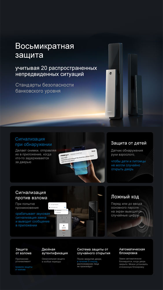• Способы открытия: Отпечаток пальца, распознавание лица, пароль, IC-карта, NFC, приложение, ключ