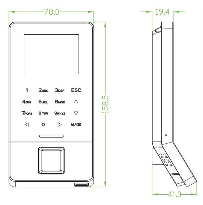 Контроллер оснащён оптическим сканером отпечатков пальцев, встроенным считывателем Proximity-карт и клавиатурой для ввода пароля.