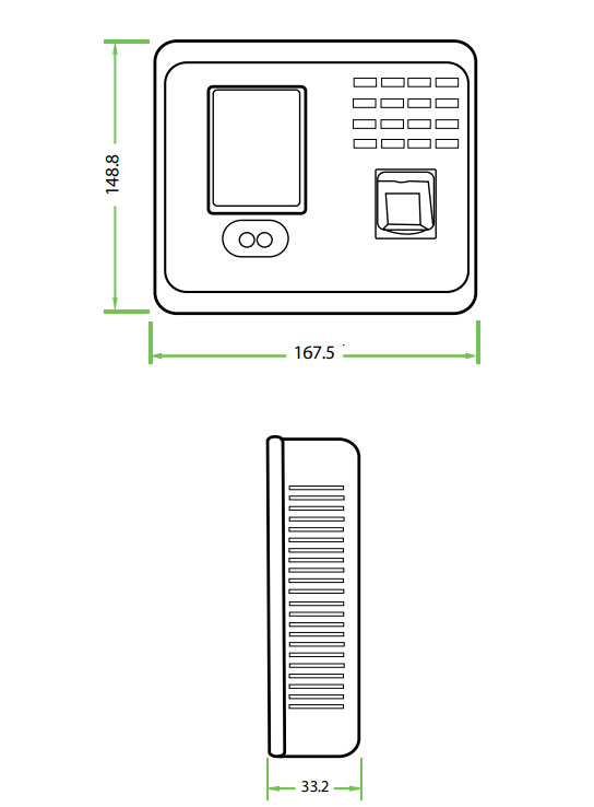 • Функции: SMS , DTS , Звонок по расписанию, Запрос на самообслуживание, Автоматическое переключение статуса, Ввод Т9, Фото ID , Камера, Мульти-верификация, 12В Выход, RS 232 Принтер (опция)