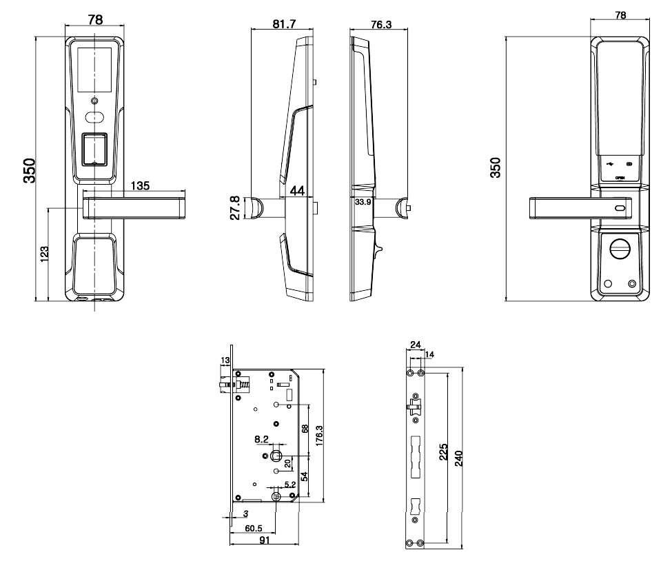 Подходит для двери любой навески (толщина полотна — 35 ~ 90 мм). Рассчитан на 100 пользователей.