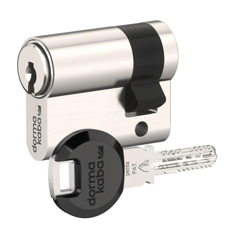Модель dormakaba penta имеет cамый высокий уровень защиты: 22 пары пинов расположенных в 5 рядов на 85 возможных позициях гарантируют высочайший уровень секретности механизма – 867 трлн комбинаций и огромные возможности по созданию мастер-систем любого уровня сложности. А опция защиты от перелома LAM делает его максимально защищенным от всевозможных методов взлома и вскрытия.