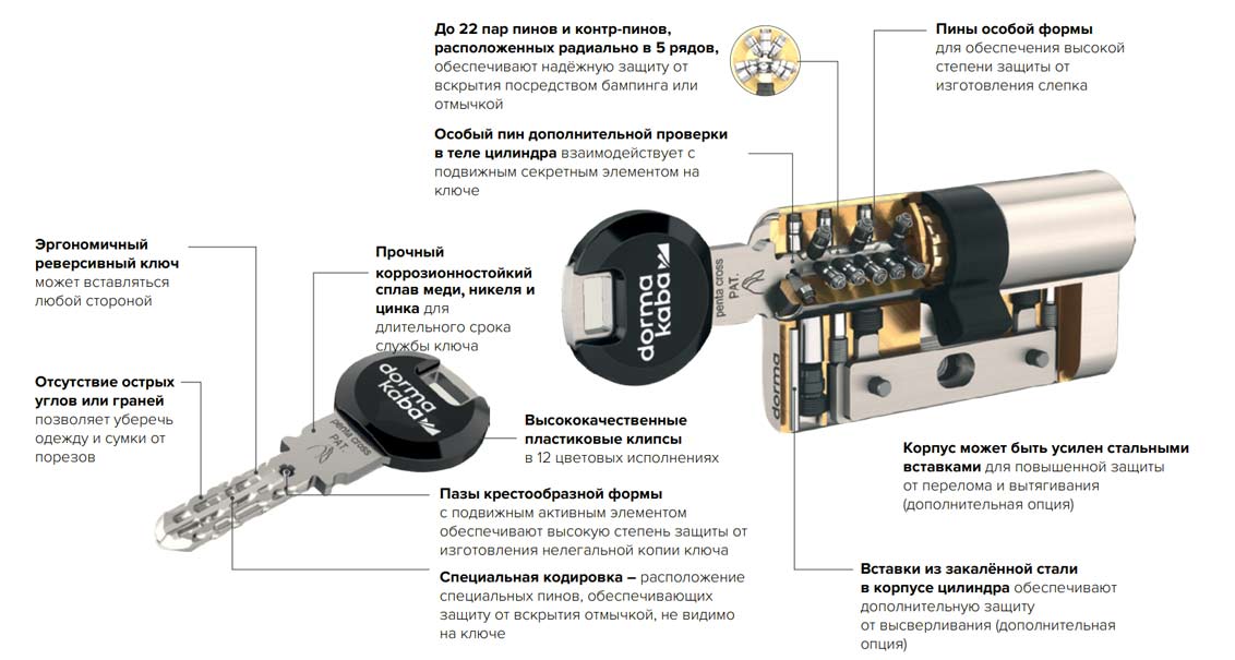 Система penta защищена патентом до 2033 года. Дубликаты ключей на нее можно изготовить только в авторизованных сервисных центрах или непосредственно на заводе-изготовителе.
