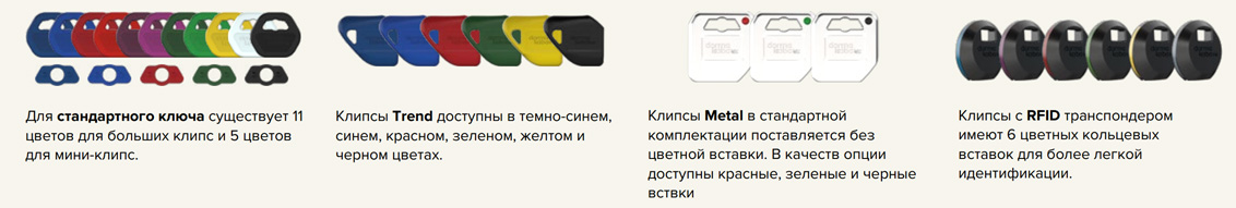 • Ключ с металлической шляпкой Metallclip с возможностью заказа трех цветных меток.