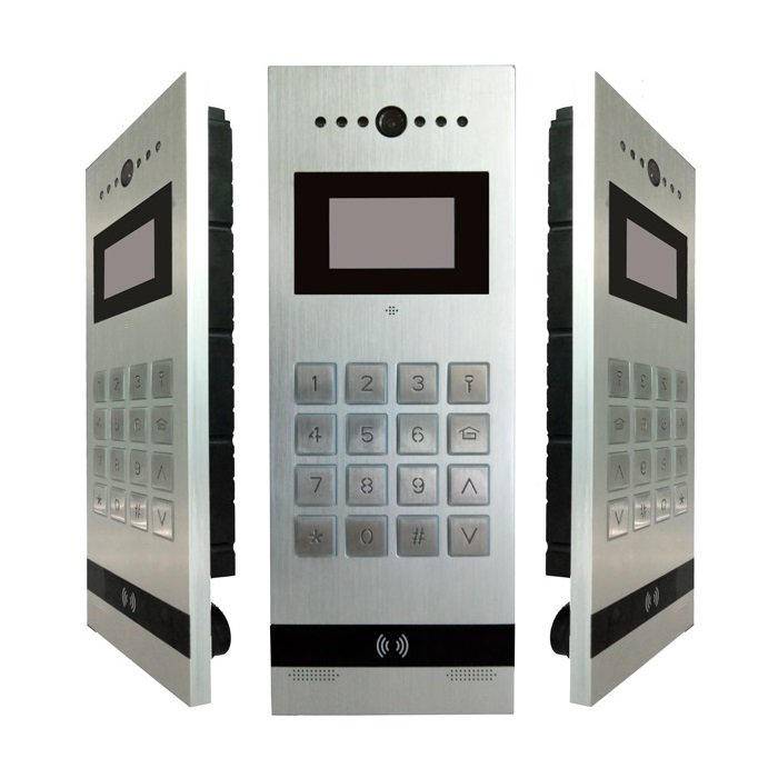 Вызывная панель цветного многоквартирного домофона со встроенным считывателем карт Em-marin. Прочный алюминиевый корпус. Анимированный TFT дисплей. Простое подключение с помощью разъемов RJ-45 (подключение по стандарту T568B). Управление замком. Подключение датчика положения двери. Выход Wiegand-26 для подключения к стороннему контроллеру СКУД.